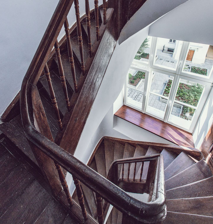 - zrewitalizowane klatki schodowe, odtworzone historyczne dekoracje i wykończenia: m.in. balustrady, drewniane poręcze, dekory