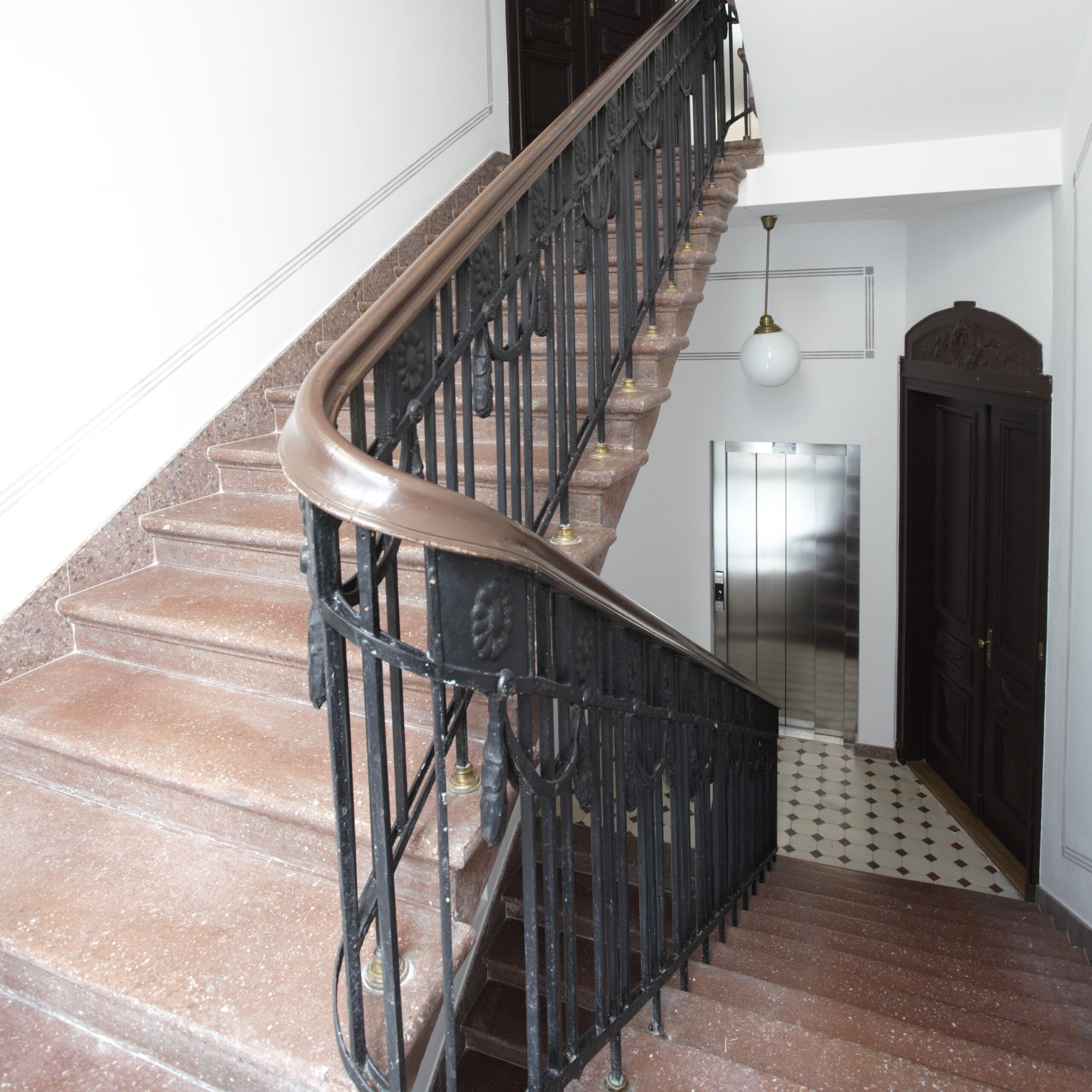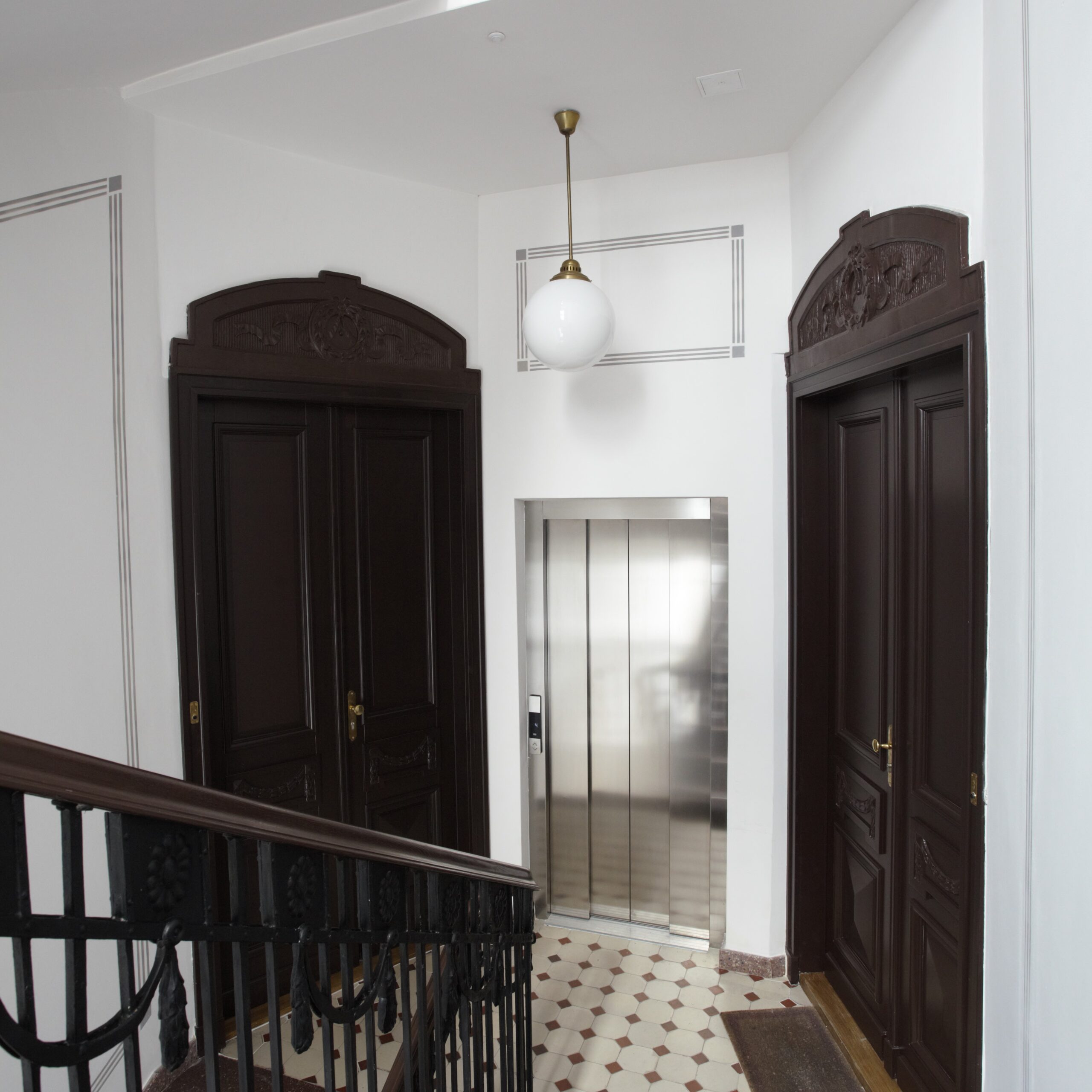- odnowiana XIX – wieczna metalowa siatka osłaniająca szyb windowy w „duszy” klatki schodowej